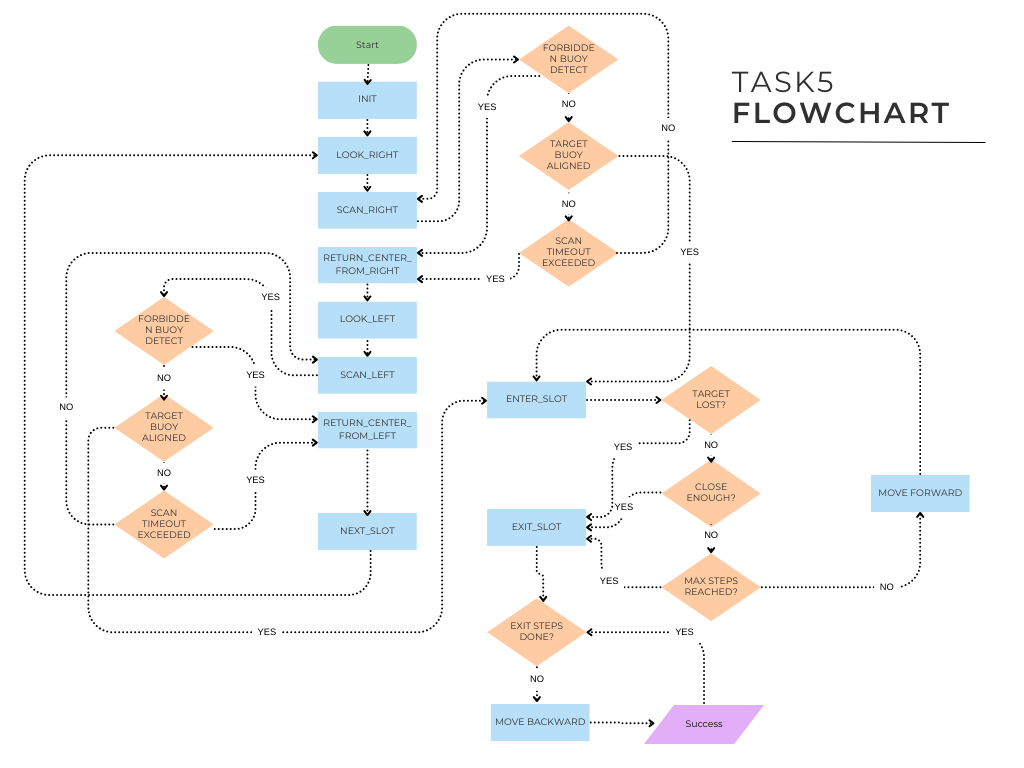 In the Navigate the Marina task, the USV scans docking slots using color-based visual classification. It autonomously identifies the correct slot, aligns itself, and performs a controlled docking maneuver. Incorrect or occupied slots are skipped systematically.