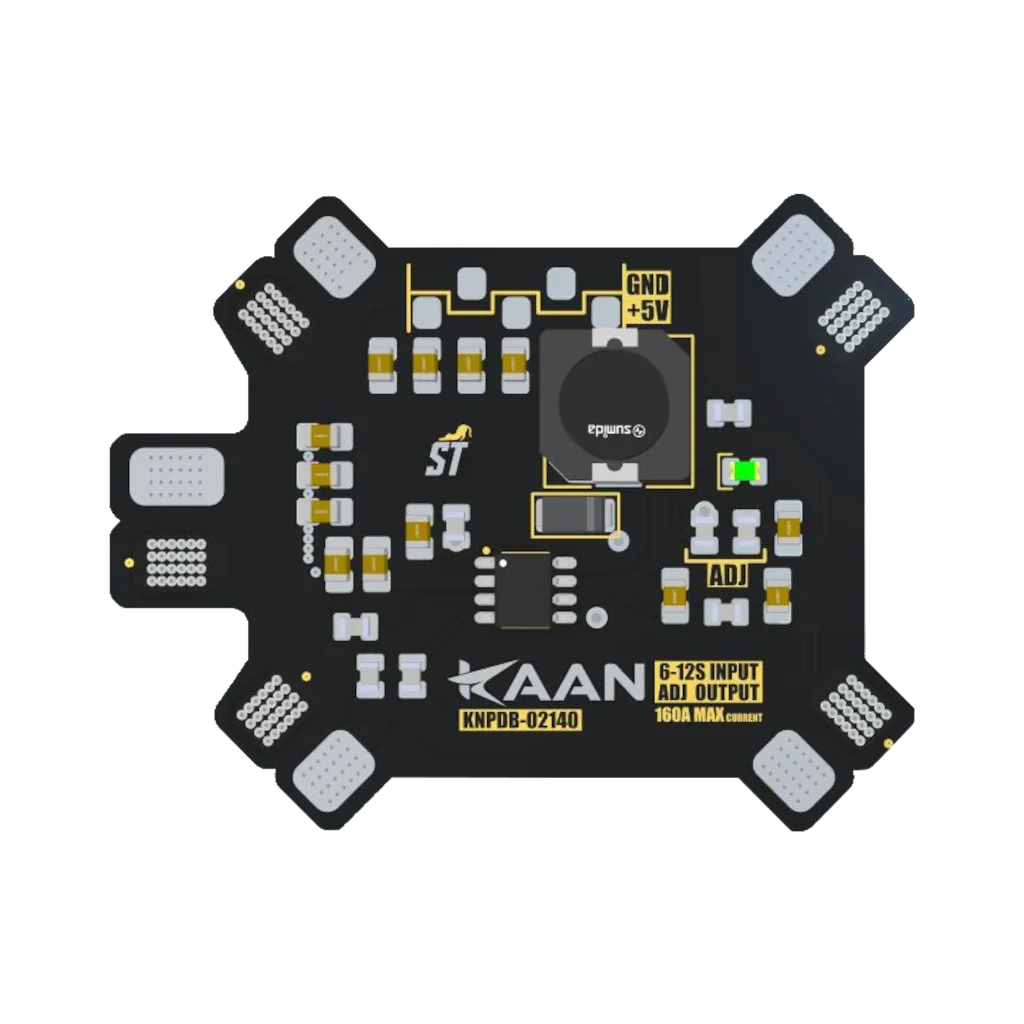 The vehicle is powered by two MasterFlight 10,000 mAh batteries, supplying sufficient energy for extended autonomous missions. Power distribution and voltage regulation are managed by our custom-designed KAAN KNPDB0242 Power Distribution Board, developed specifically for unmanned marine platforms.