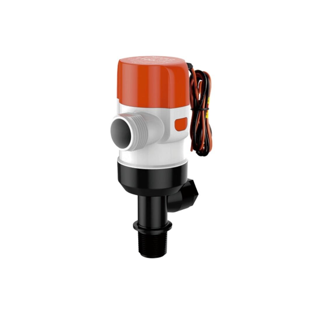 A fully submersible, high-capacity pump capable of delivering 1100 GPH flow rate, selected to ensure a consistent and powerful water stream for target engagement tasks while operating on a dedicated power circuit.nt inductive loads, such as the water pump, using low-voltage logic signals.